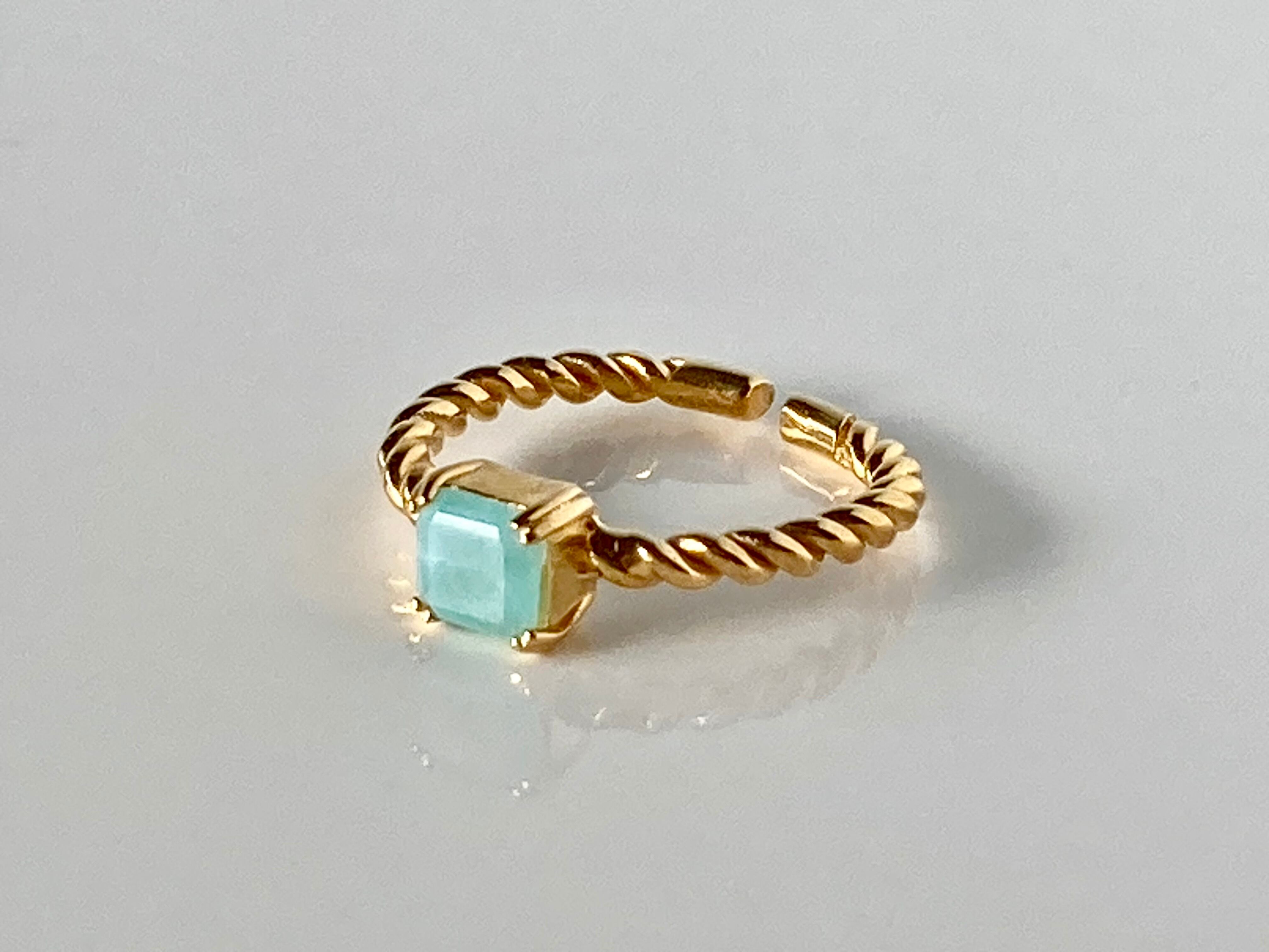 リング 指輪 ラリマー 水色 スクエア 天然石 ゴールド アクセサリー K18 18K 18金 フリーサイズ ニッケルフリー 重ね付けアクセサリー ハンドメイド プレゼント ギフト velemore