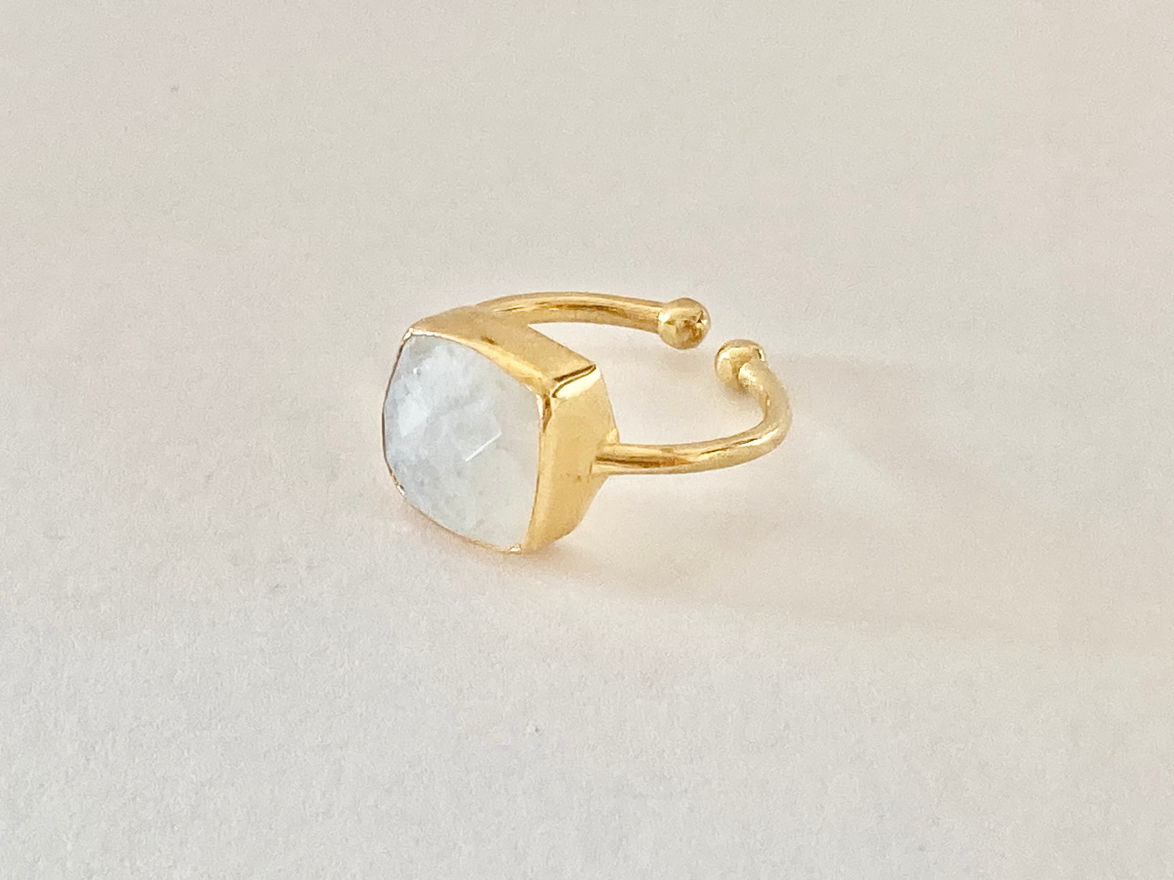リング 指輪 ムーンストーン スクエア 天然石 ゴールド アクセサリー K18 18K 18金 大きめ 大粒 フリーサイズ ニッケルフリー ボリュームアクセサリー ハンドメイド プレゼント ギフト velemore